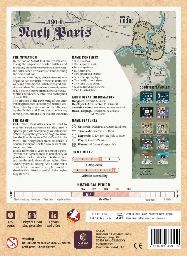 - One scenario booklet of 36 pages including 12 scenarios and an extensive 15 page example of play